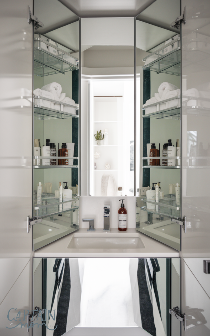 A mirrored medicine cabinet offers two functions in one. It’s one of the most efficient tiny powder room storage ideas. You get a mirror for daily use and hidden shelves for toiletries. Choose a slim design to avoid bulkiness. This solution keeps countertops clear while maintaining a sleek style. Tiny powder room storage ideas that combine function and design are always a win.