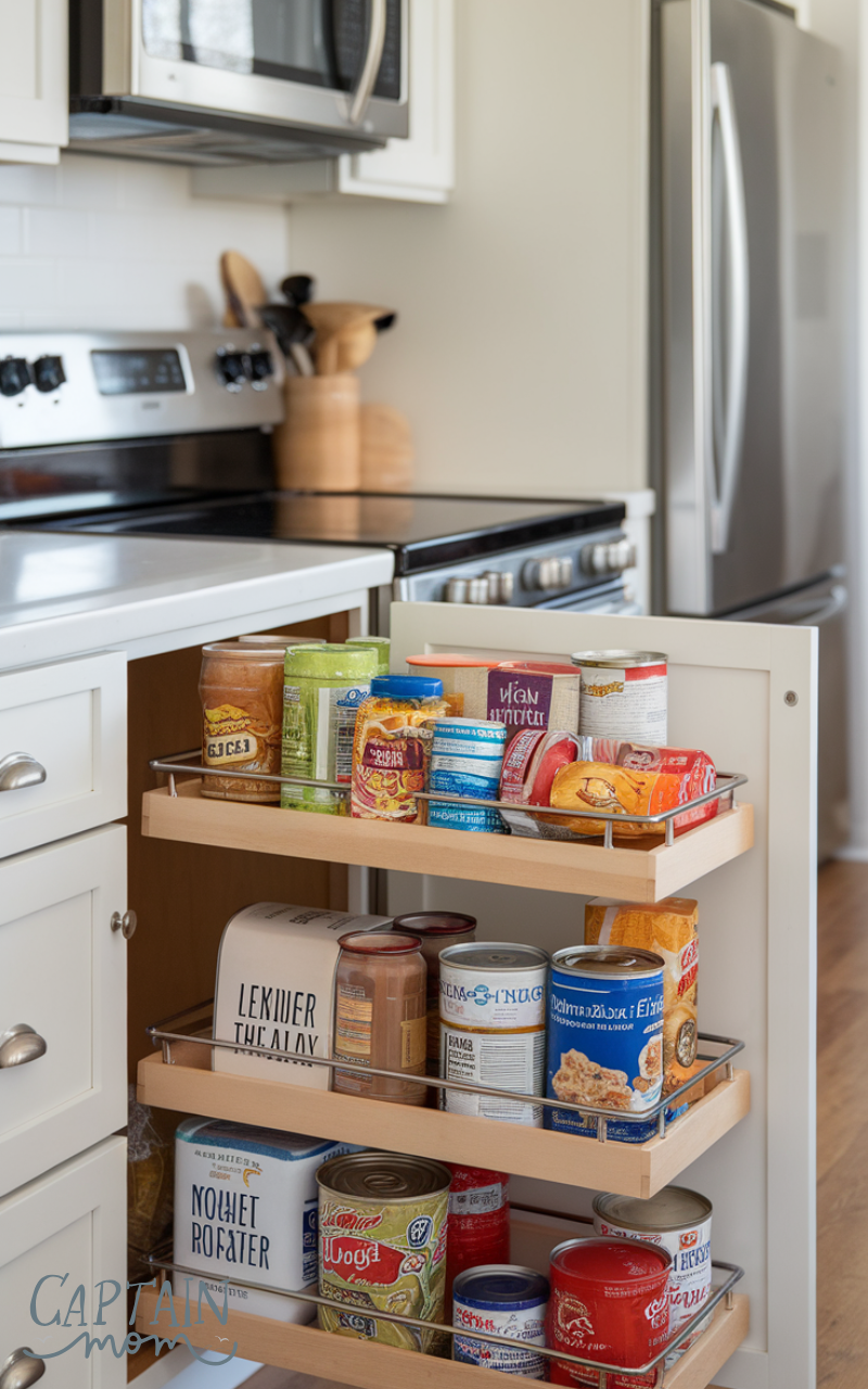 Keeping snacks contained prevents them from spreading across multiple cabinets. It also makes it easy to monitor inventory and encourage healthier options. This Small Kitchen Zone reduces daily chaos, especially in busy households.