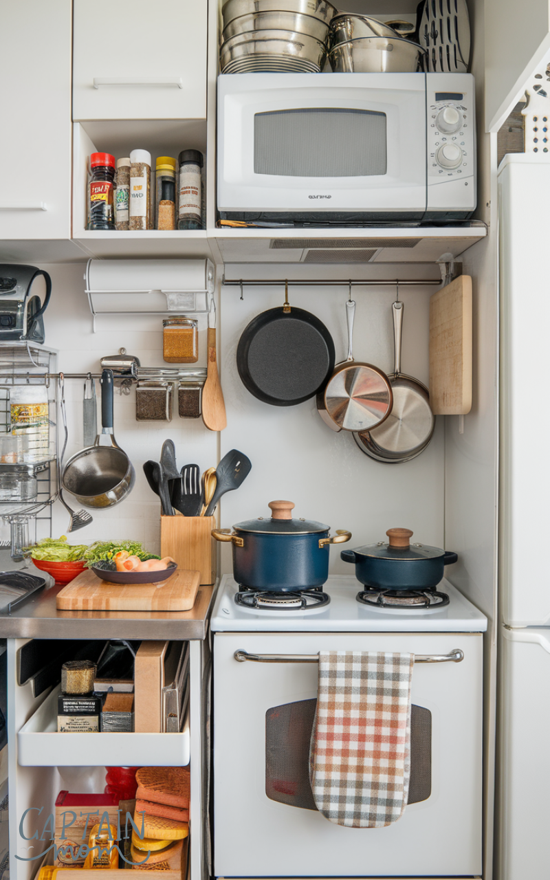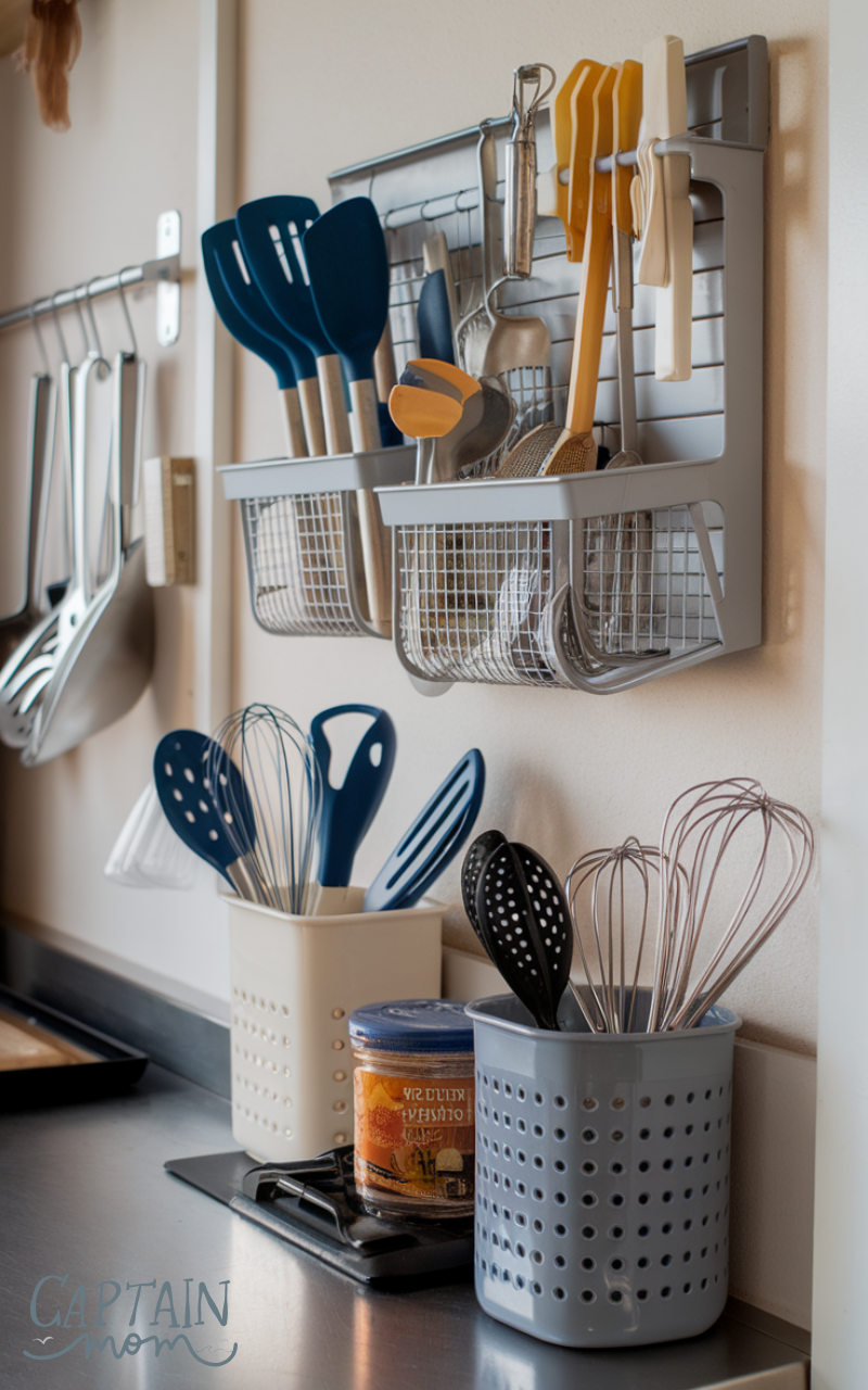 If drawer space is limited, a countertop crock can work — just avoid overcrowding it. This Small Kitchen Zone ensures you never waste time digging for the right tool mid-recipe.