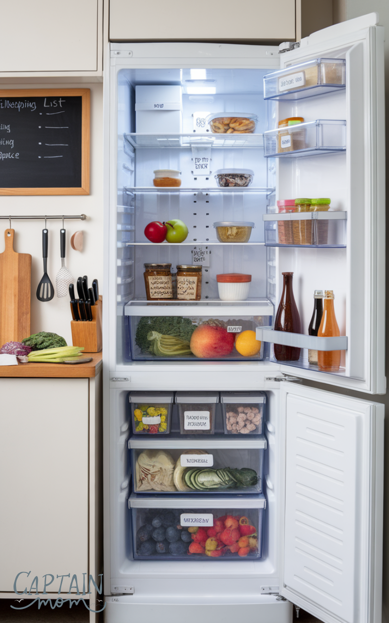 Organize your fridge in a dedicated small kitchen zone. Use clear bins, labels, and drawer dividers for fruits, vegetables, and condiments. This helps reduce waste, keeps items visible, and ensures efficient use of limited fridge space.