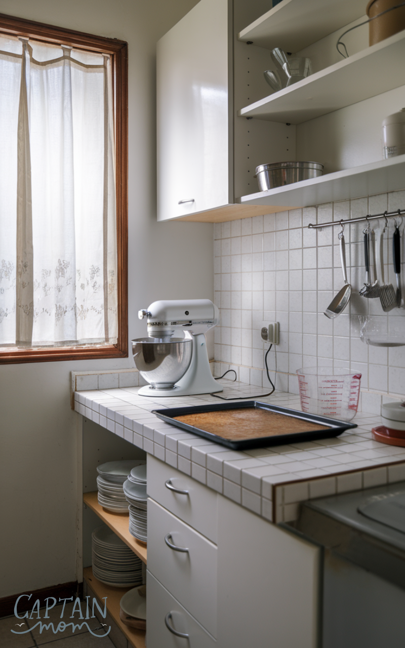 If you love baking, create a baking small kitchen zone. Keep measuring cups, mixing bowls, and baking sheets together. A small shelf or drawer organizer ensures everything is at hand, making cookie or cake preparation smooth and enjoyable, even in tight spaces.