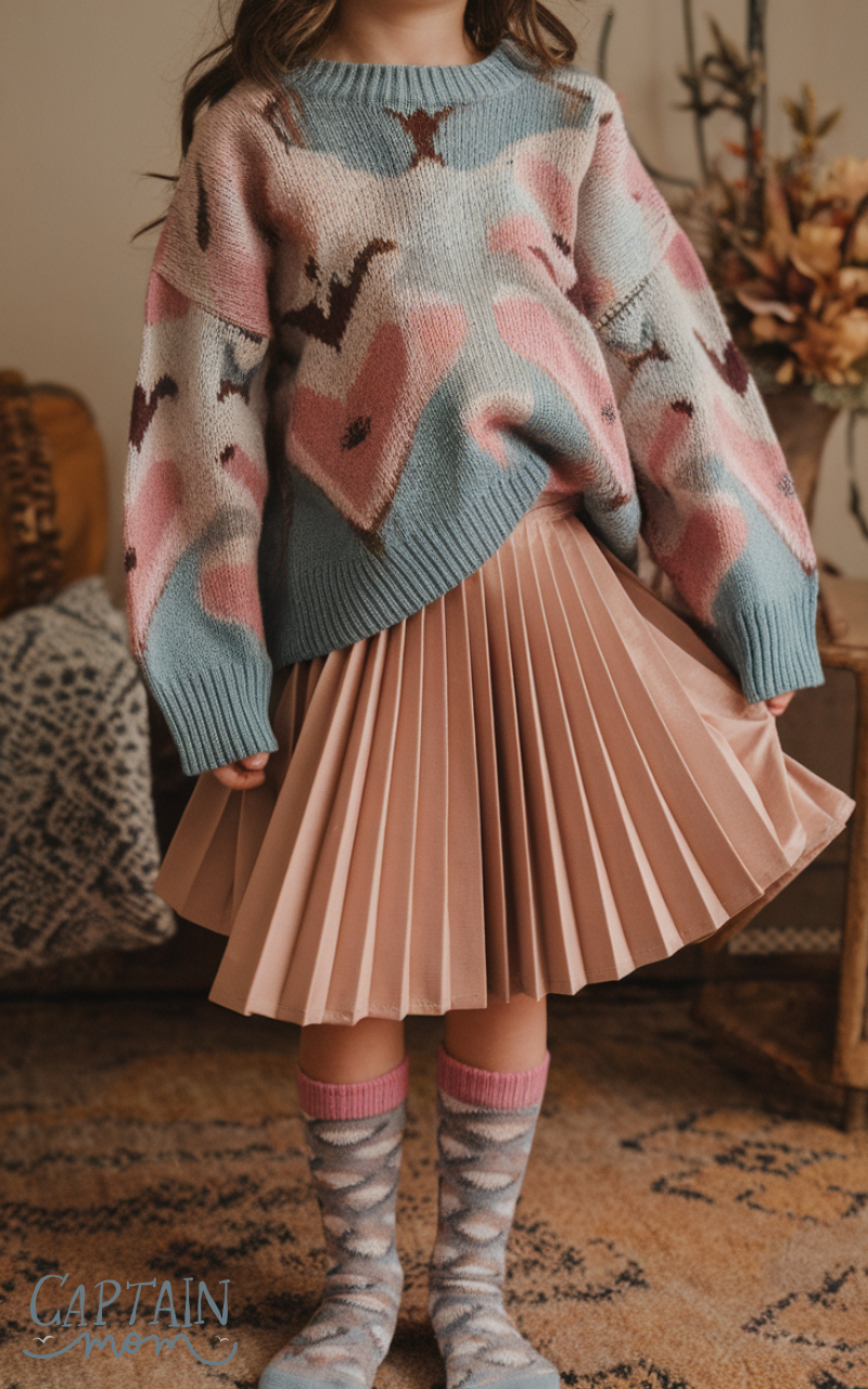 Layering skirts with oversized sweaters is a stylish approach for cozy style using soft girl winter outfits. Pair a tulle or pleated skirt with a chunky knit for a mix of texture and dimension. This creates a cute, feminine look that’s warm, comfortable, and perfect for casual outings.