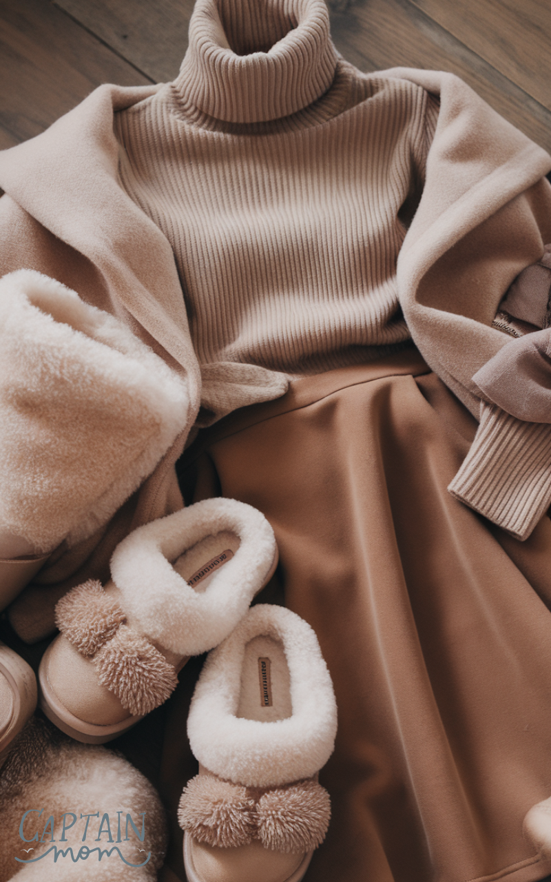 Footwear matters in cozy style using soft girl winter outfits. Fuzzy slippers for home or plush-lined boots for outings enhance comfort and add to the soft aesthetic. They make your outfit feel extra inviting while staying practical in colder weather.