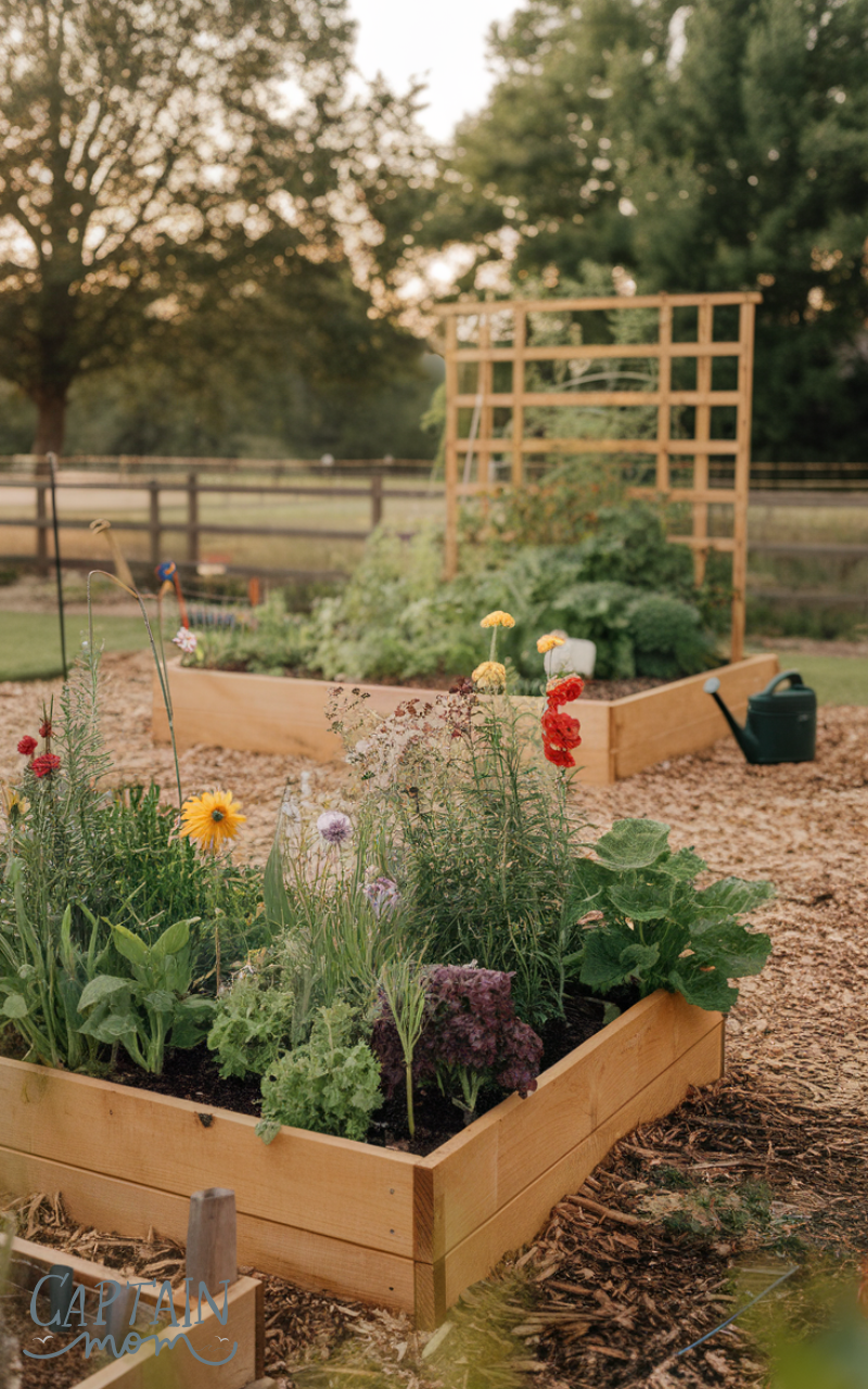 Raised beds are practical garden ideas for busy moms because they are easier to manage and faster to maintain. They reduce bending, improve soil control, and make watering more efficient. Busy parents can grow vegetables or flowers in a structured way that saves time and energy. This setup also helps keep gardens neat and child-friendly.