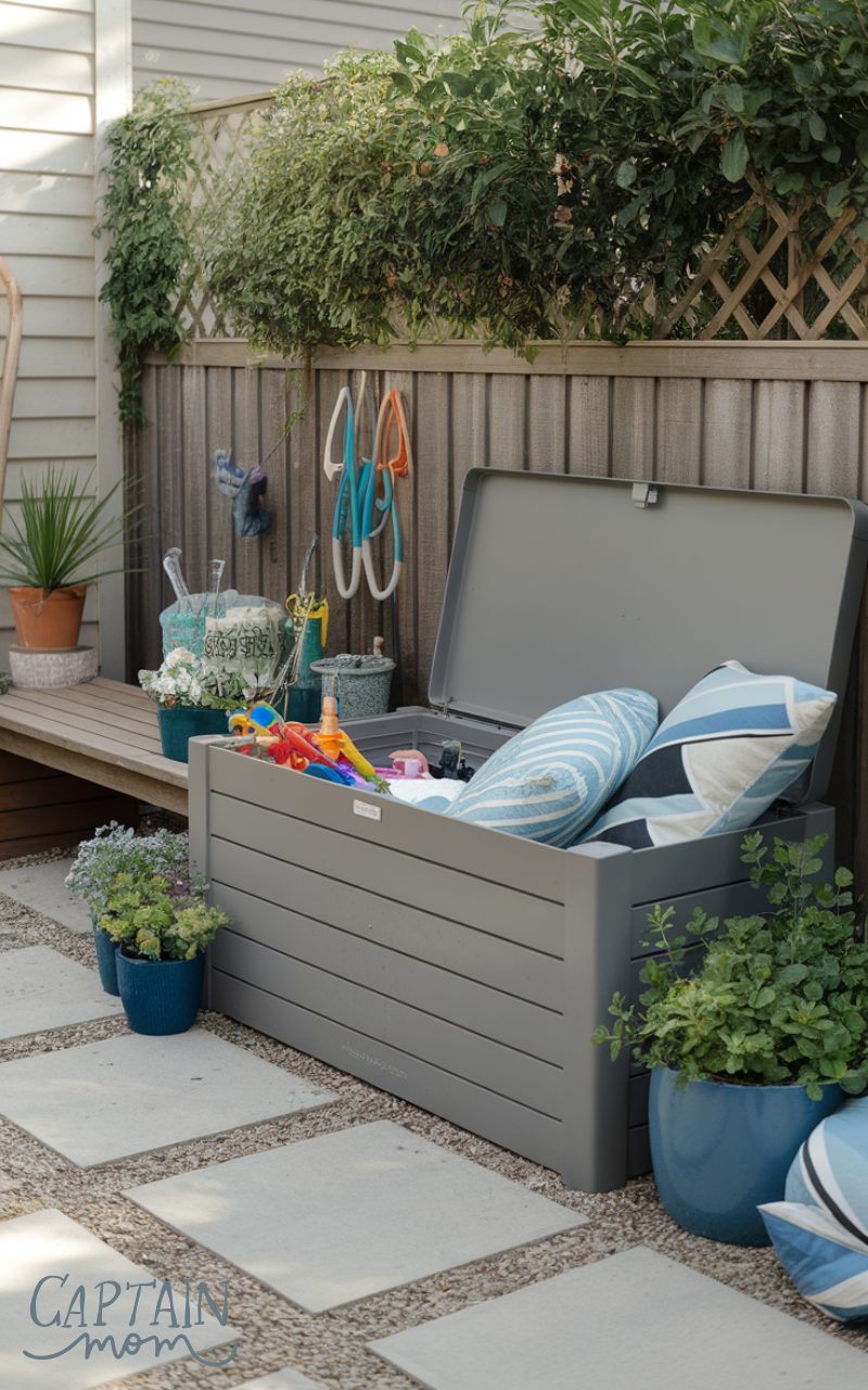 Good storage supports effective garden ideas for busy moms. Weatherproof storage boxes keep toys, tools, and cushions in one place. Busy parents save time by staying organized and avoiding clutter. A tidy garden is easier to manage and more enjoyable for the whole family.