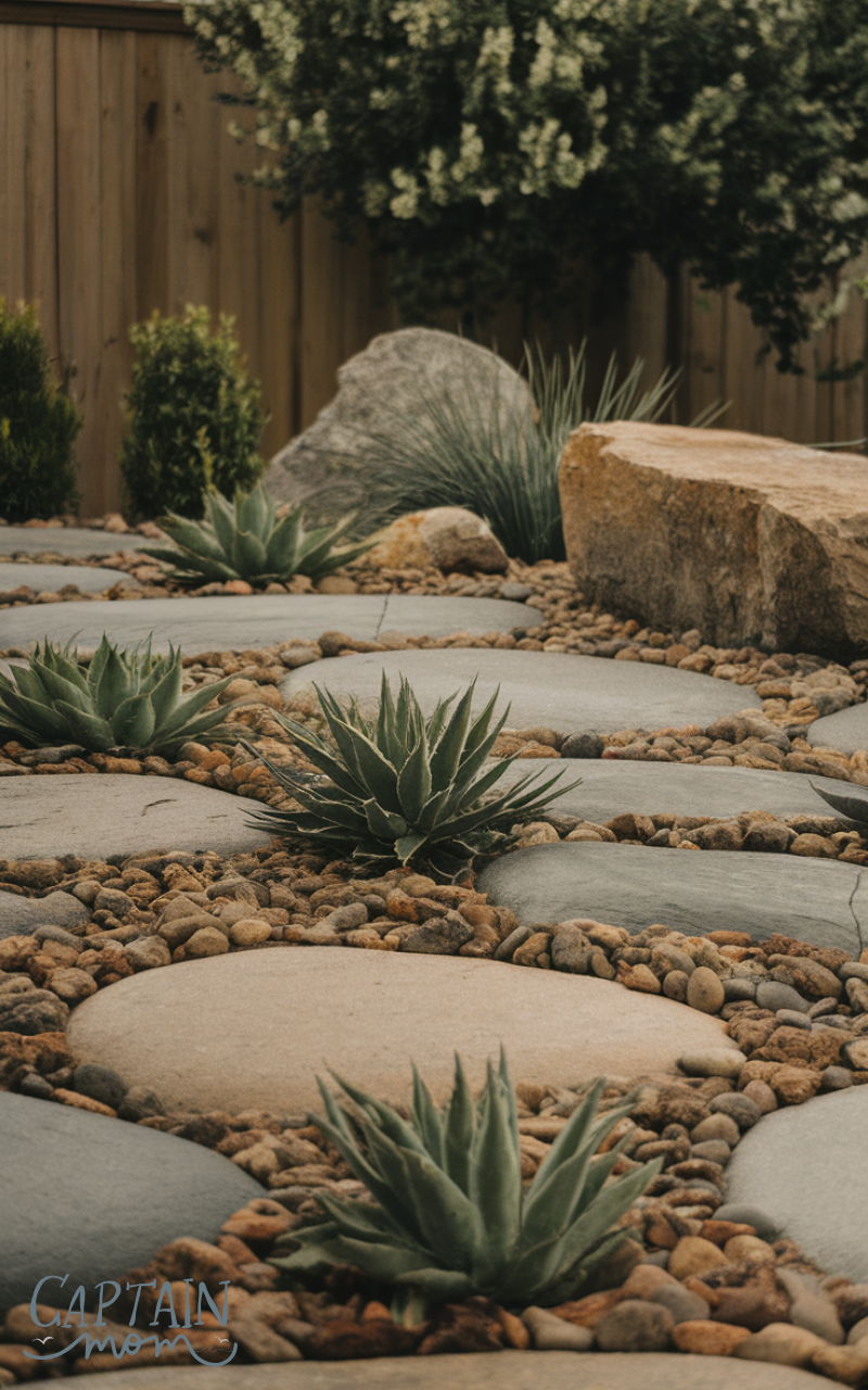 Replacing grass with decorative stones is a clever garden idea for busy moms. Rock gardens require almost no watering or mowing, making them ideal for busy parents. Combined with a few hardy plants, they add texture and style while drastically reducing garden chores and long-term maintenance.