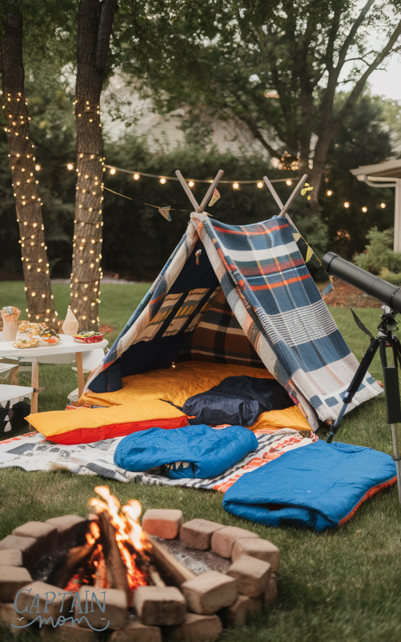 Transform your backyard into a campsite for a memorable outdoor fun backyard activity for kids at home. Set up a tent or make one with blankets, bring out sleeping bags, tell stories, and snack on marshmallows (or safer alternatives). This simple adventure builds imagination and gives kids a feeling of being in the wild without leaving home. Add fairy lights and a star-gazing session to make it extra special and educational.