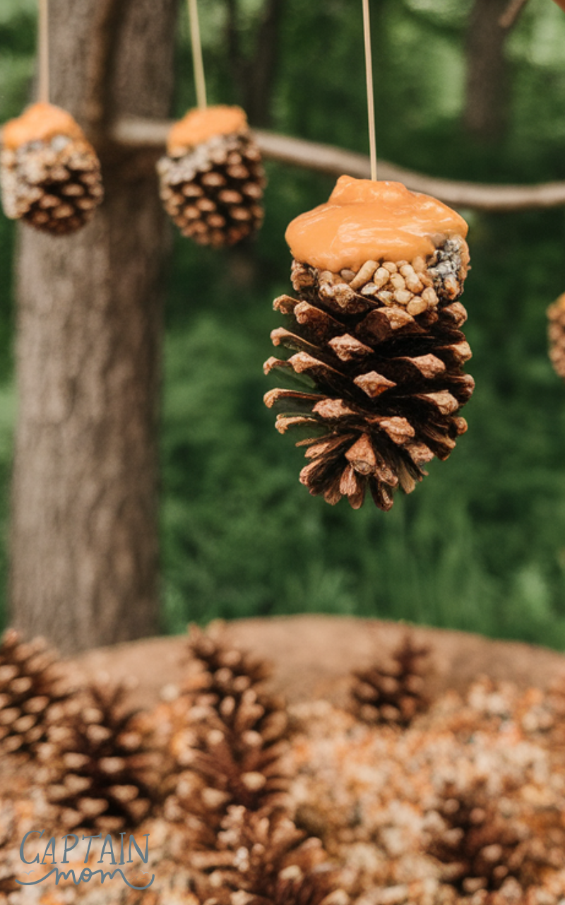 Create bird feeders using pinecones, peanut butter, and bird seeds for an educational outdoor fun backyard activity for kids at home. Hang them on trees and watch birds visit. Kids learn about wildlife and feel proud watching their feeder attract birds. This activity blends crafting and nature study and offers endless opportunities to learn about different bird species visiting your backyard.