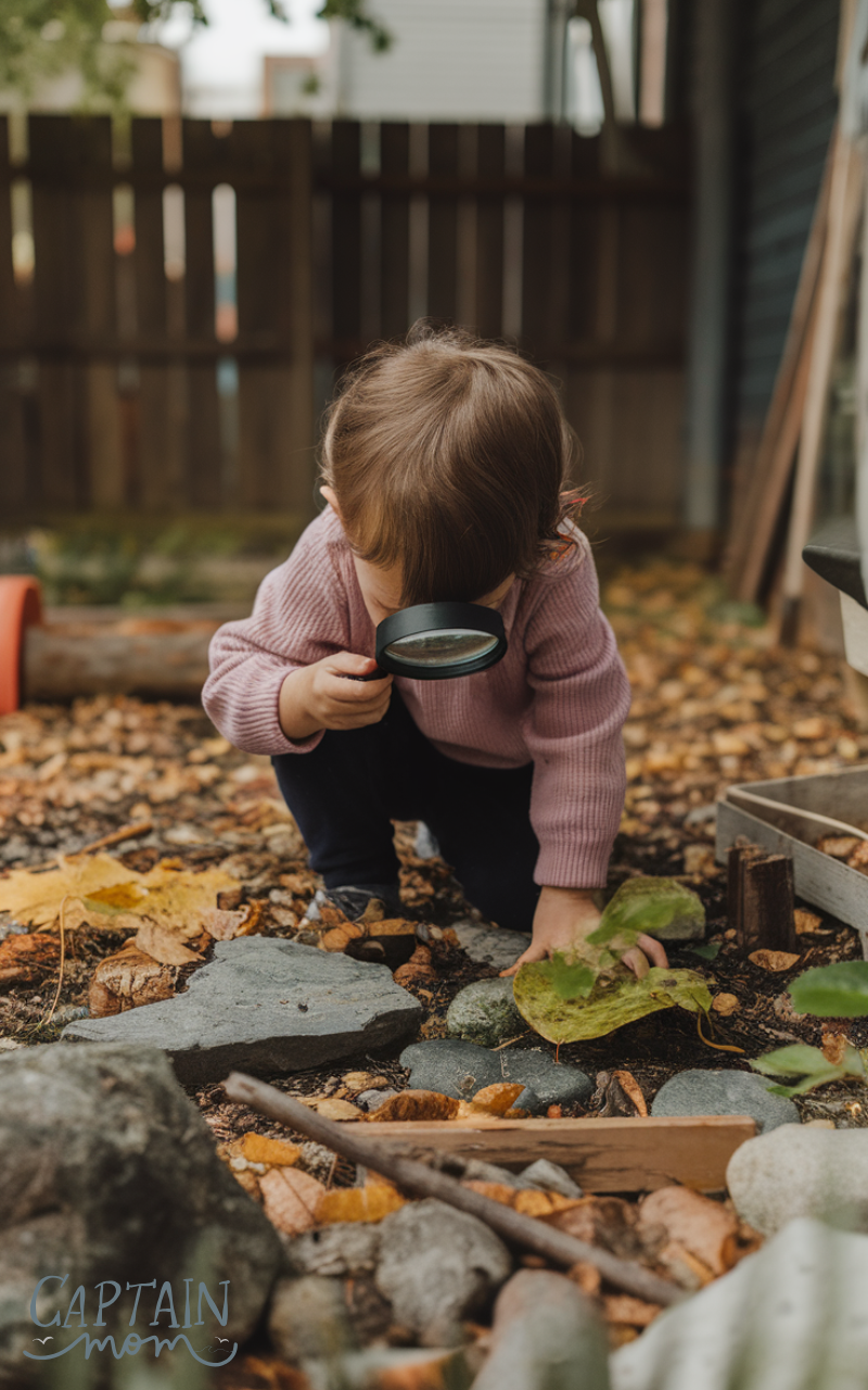 Turn your backyard into a discovery zone — an outdoor fun backyard activity for kids at home that teaches patience and curiosity. Give kids a magnifying glass and a list of things to find like insects, worms, different leaves, or rocks. They’ll learn about nature up close and build observation skills. This activity is calming yet engaging, perfect for slow afternoons of learning and wonder.