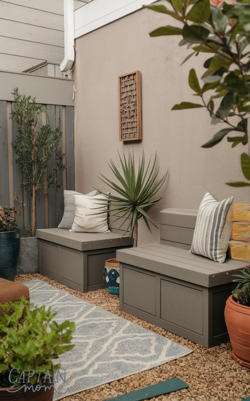 The smartest upgrade for small yards upgraded with small backyard ideas on a budget is multi-use seating with storage. Benches that open for storage help reduce clutter while providing seating. This idea maximizes functionality and keeps small spaces tidy. Affordable storage benches are widely available and perfect for organizing outdoor items while enhancing style.