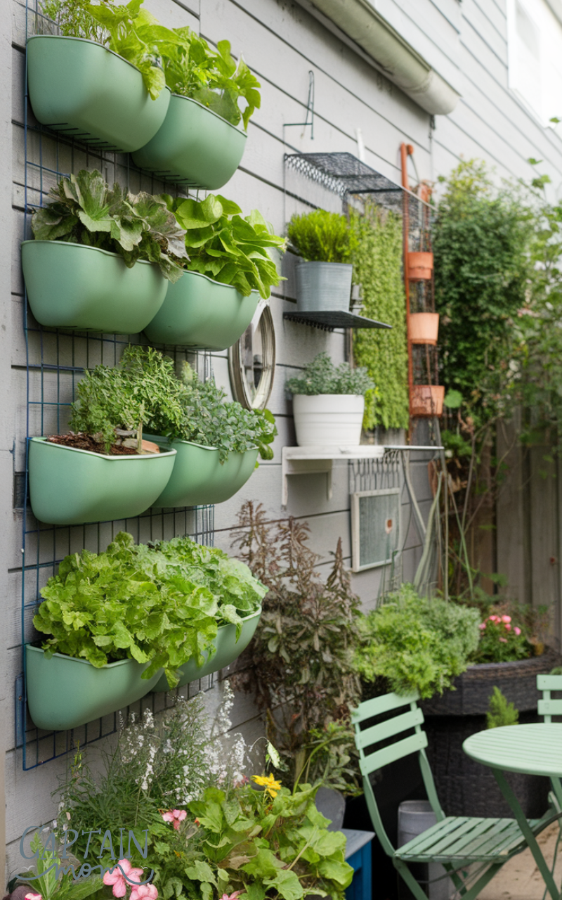 When space is limited, growing upward is smart for small yards upgraded with small backyard ideas on a budget. Vertical gardens can be made using hanging planters, wall-mounted pots, or recycled shelves. They allow you to grow flowers, herbs, or small plants without taking up floor space. This idea adds greenery, improves the atmosphere, and creates a fresh look. Vertical gardening is affordable and perfect for turning plain walls into lively, eye-catching features.