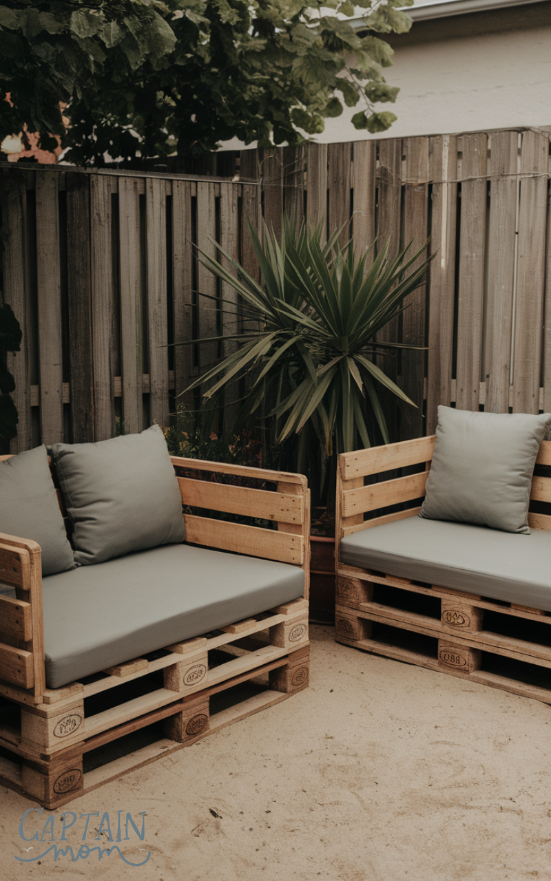 Wooden pallets are a budget-friendly solution for small yards upgraded with small backyard ideas on a budget. With a little sanding and outdoor paint, pallets can turn into stylish sofas or benches. Add cushions or old pillows covered with weather-resistant fabric for comfort. This idea saves money while offering flexible seating that fits perfectly in small spaces. Pallet furniture also adds a relaxed, cozy vibe that makes your backyard more inviting for everyday use or casual gatherings.