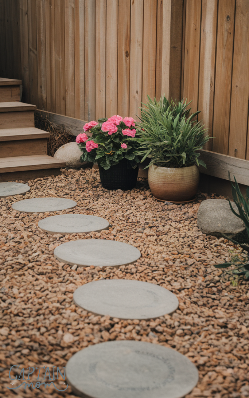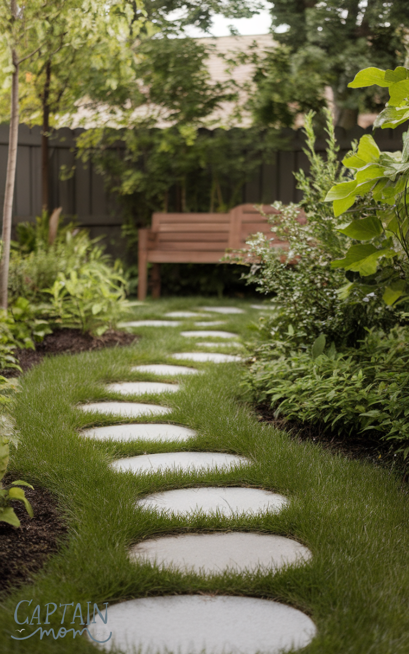 Stepping stones help organize small yards upgraded with small backyard ideas on a budget. They guide movement, protect grass, and add charm. You can use concrete stones or DIY versions made from molds. This idea improves both function and design while keeping costs low. Pathways make a small yard feel intentional and thoughtfully planned.