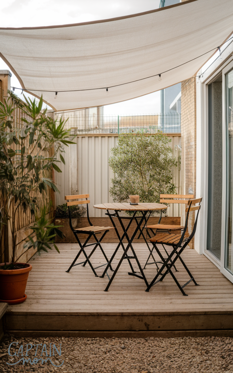 Shade is essential for comfort in small yards upgraded with small backyard ideas on a budget. Using umbrellas, fabric canopies, or simple shade sails provides protection from the sun without costly structures. This idea improves usability and makes your backyard enjoyable during hot days. Affordable shade options are easy to install and remove when needed.