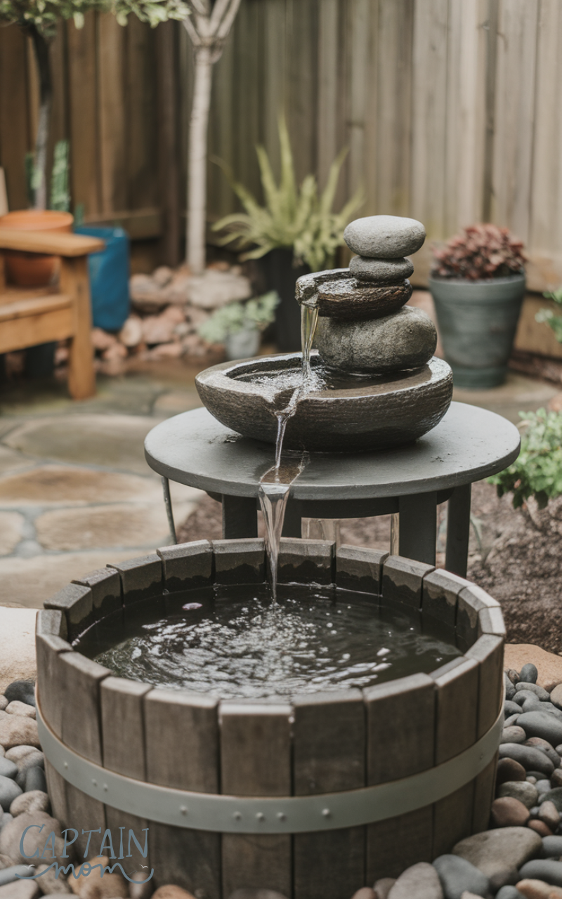 Small water features can elevate small yards upgraded with small backyard ideas on a budget. Simple tabletop fountains or DIY water bowls add soothing sounds and visual interest. These compact features don’t take much space and are relatively inexpensive. The calming effect of water helps create a peaceful outdoor environment even in the smallest yards.