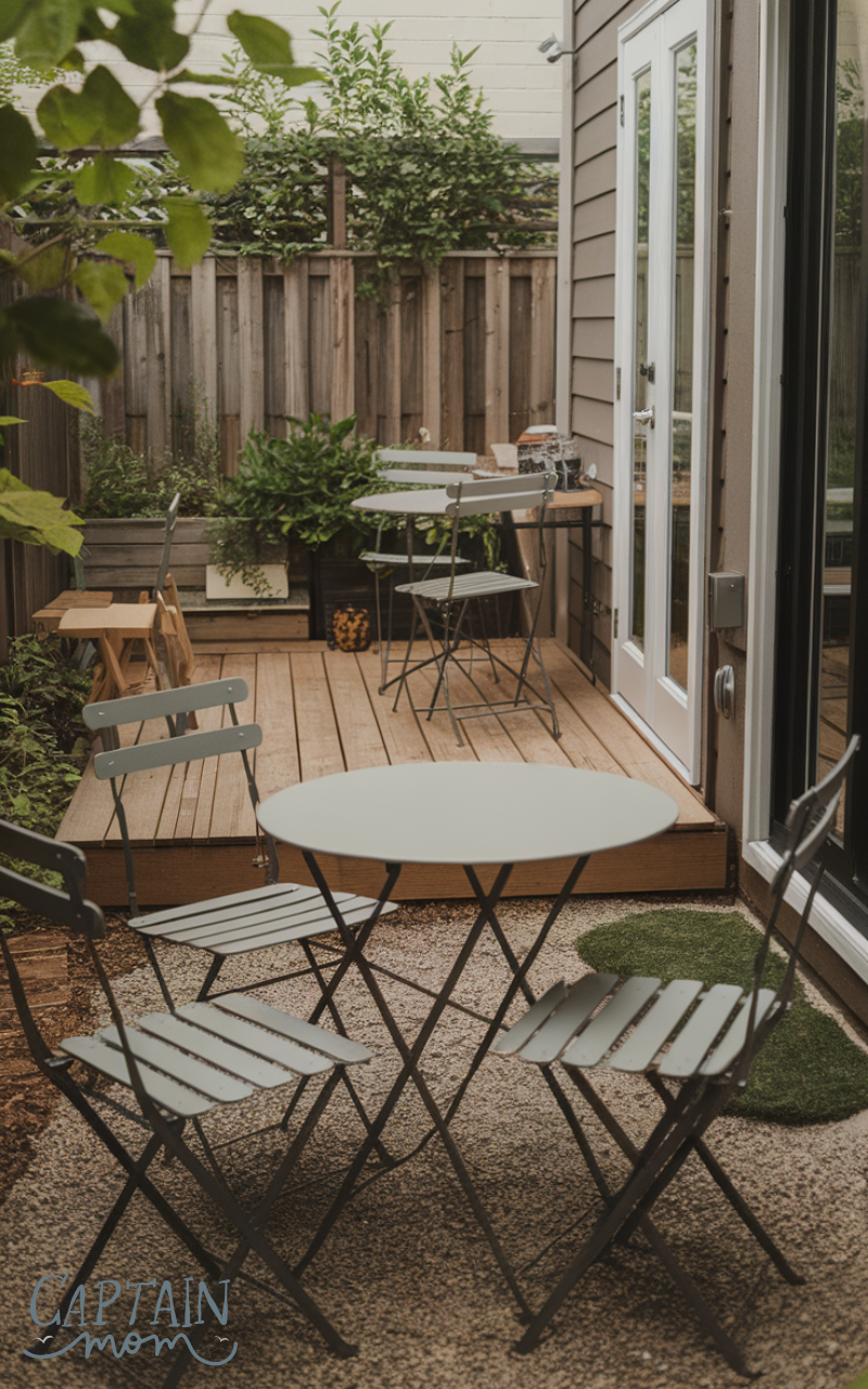 Foldable chairs and tables are ideal for small yards upgraded with small backyard ideas on a budget. They save space and can be stored when not in use, keeping the yard uncluttered. Affordable options are widely available and come in many styles. This practical solution allows you to host guests when needed without permanently filling your small outdoor area with bulky furniture.
