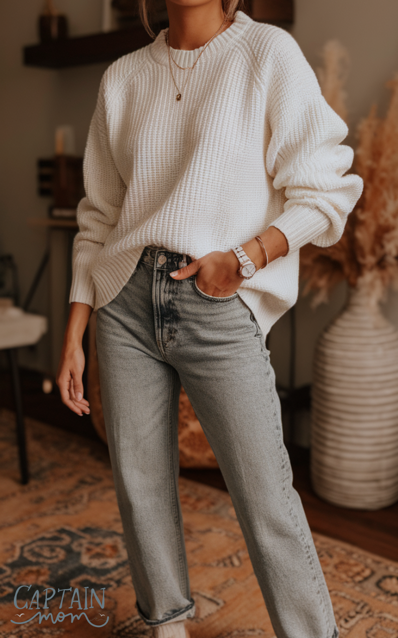 10. White Knit and Jeans
