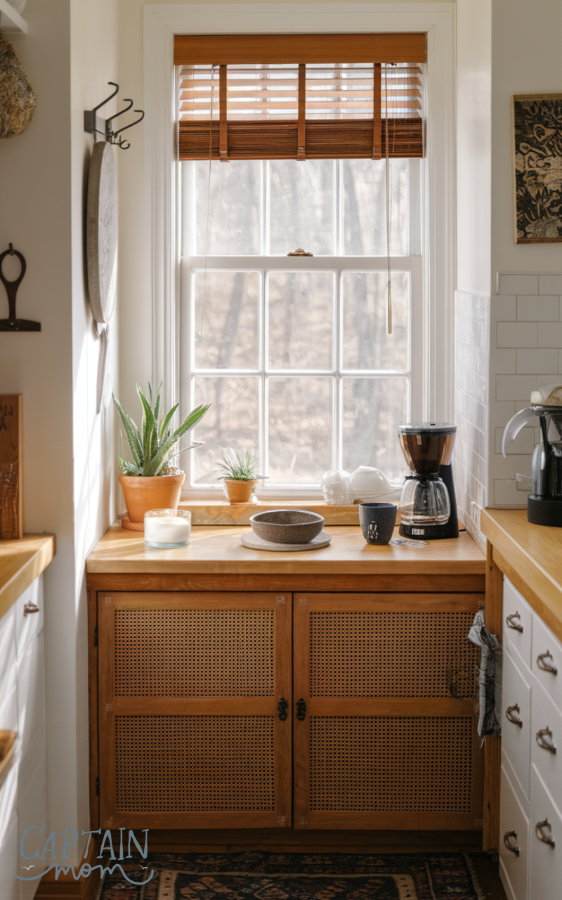 Placing a breakfast station near a window is a charming Breakfast Station Small Kitchen idea that adds natural light. A small counter area by the window can hold coffee essentials while creating a pleasant morning atmosphere. Natural light makes the kitchen feel larger and more inviting, improving the overall breakfast experience.
