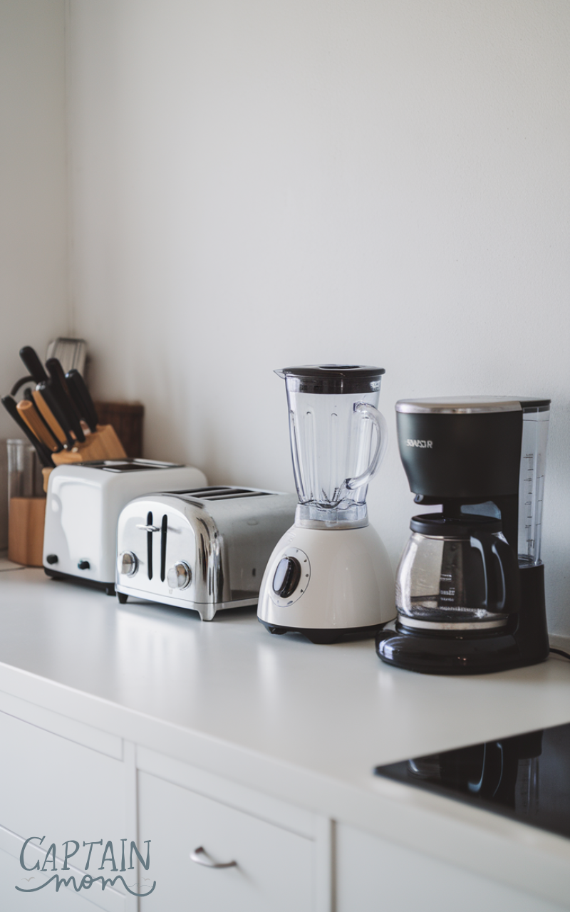 Grouping appliances by task is a practical Kitchen Counter Organization with Small Appliances strategy. For example, place food prep tools together and breakfast appliances in one zone. This layout reduces movement and clutter. Functional grouping keeps your counter organized and improves efficiency. It also makes cleaning easier and ensures each appliance has a designated spot.