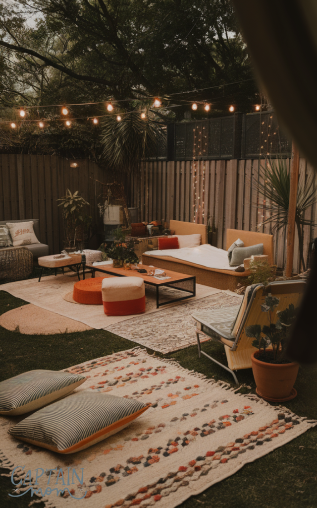 Creating a cozy lounge area is the ultimate Renter Friendly Backyard Upgrade. Combine rugs, cushions, portable furniture, and lighting to design a welcoming retreat. I believe layering textures and soft lighting makes all the difference. Everything remains movable and temporary, so you keep your deposit safe while enjoying a beautiful backyard.