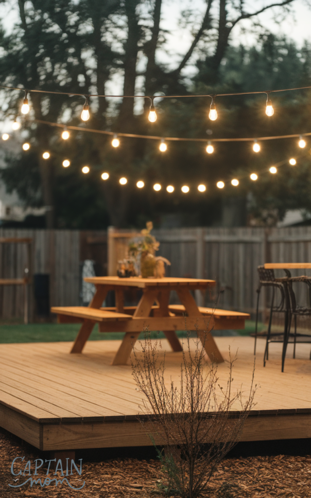 String lights are one of the simplest Renter Friendly Backyard Upgrades that instantly create a cozy atmosphere. I always recommend warm white bulbs for a soft glow that feels inviting and elegant. You can hang them using removable hooks, poles, or tension wires without drilling into walls. They work beautifully for dinners, relaxing evenings, or even small celebrations. Because they’re portable, you can easily take them with you when you move. This upgrade adds charm, warmth, and personality to any backyard without permanent changes.