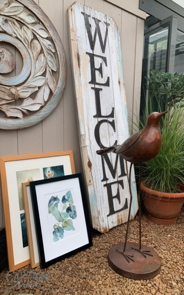 Outdoor-safe art pieces are creative Renter Friendly Backyard Upgrades. Use adhesive hooks or lean framed pieces against walls. I find that metal or weather-resistant décor adds personality quickly. Since nothing is permanently attached, it’s completely renter friendly.