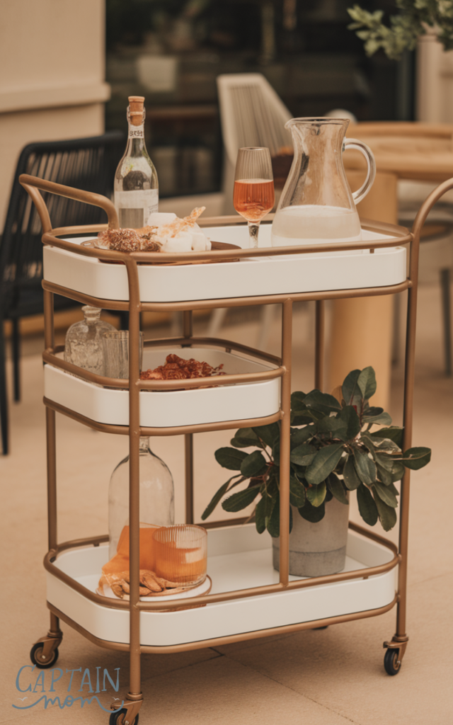 An outdoor bar cart is a functional and stylish Renter Friendly Backyard Upgrade. It’s portable and doesn’t require installation. I enjoy how it keeps drinks, snacks, and décor organized during gatherings. When not in use, it can double as a plant stand. It’s movable, versatile, and perfect for entertaining.