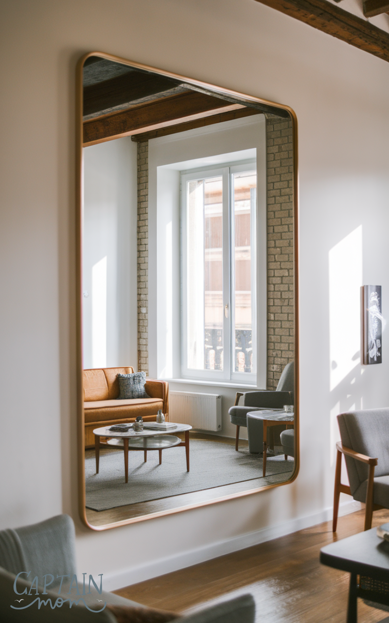 Mirrors are a classic apartment living room trick to make spaces feel larger. Placing a mirror opposite a window reflects light and brightens the room. Decorative mirrors also add style and elegance. This simple idea transforms the apartment living room instantly.