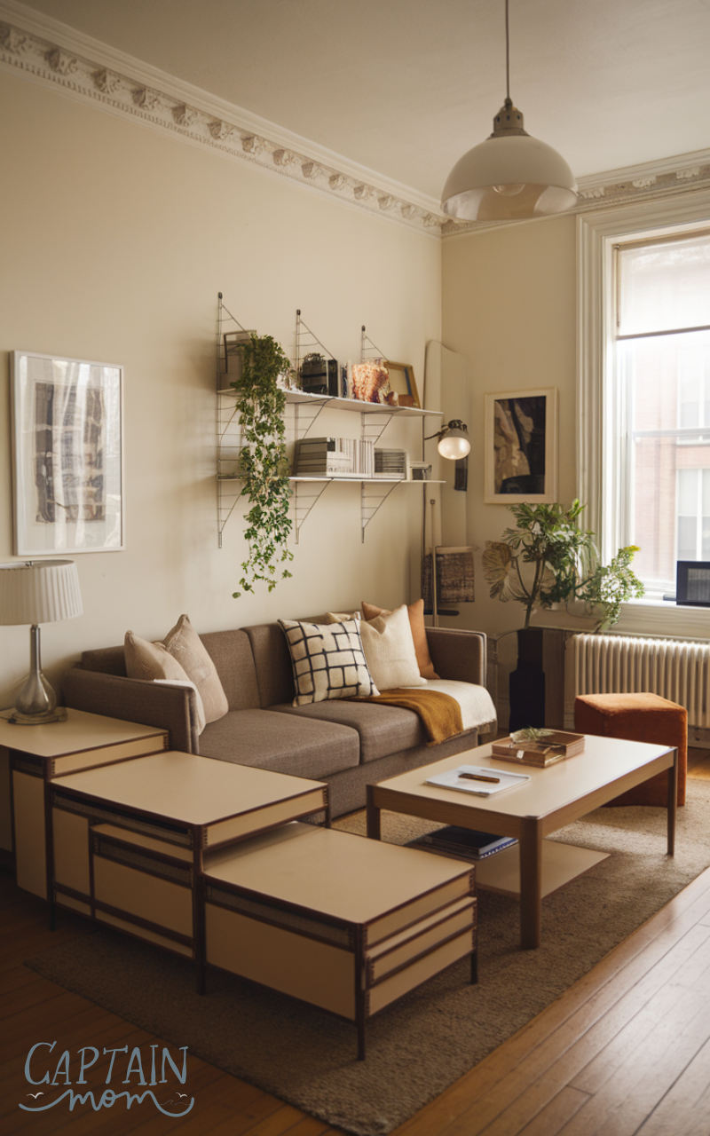 Multifunctional furniture is essential in an apartment living room. Sofas with storage, nesting tables, or ottomans that double as seating help save space while adding functionality. These pieces reduce clutter and keep the living room practical for everyday use. Smart furniture choices make apartment living room design both stylish and efficient.