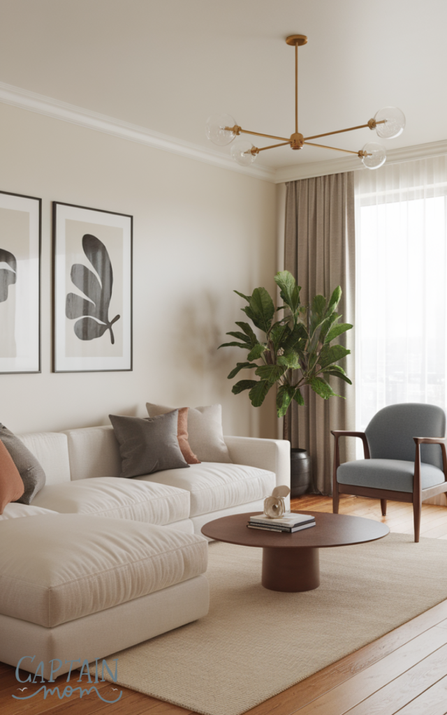 Neutral furniture provides a timeless base for an apartment living room. Adding accent colors through cushions, art, or throws keeps the space lively. This balance allows easy updates without replacing furniture. It’s a flexible and budget-friendly apartment living room idea.