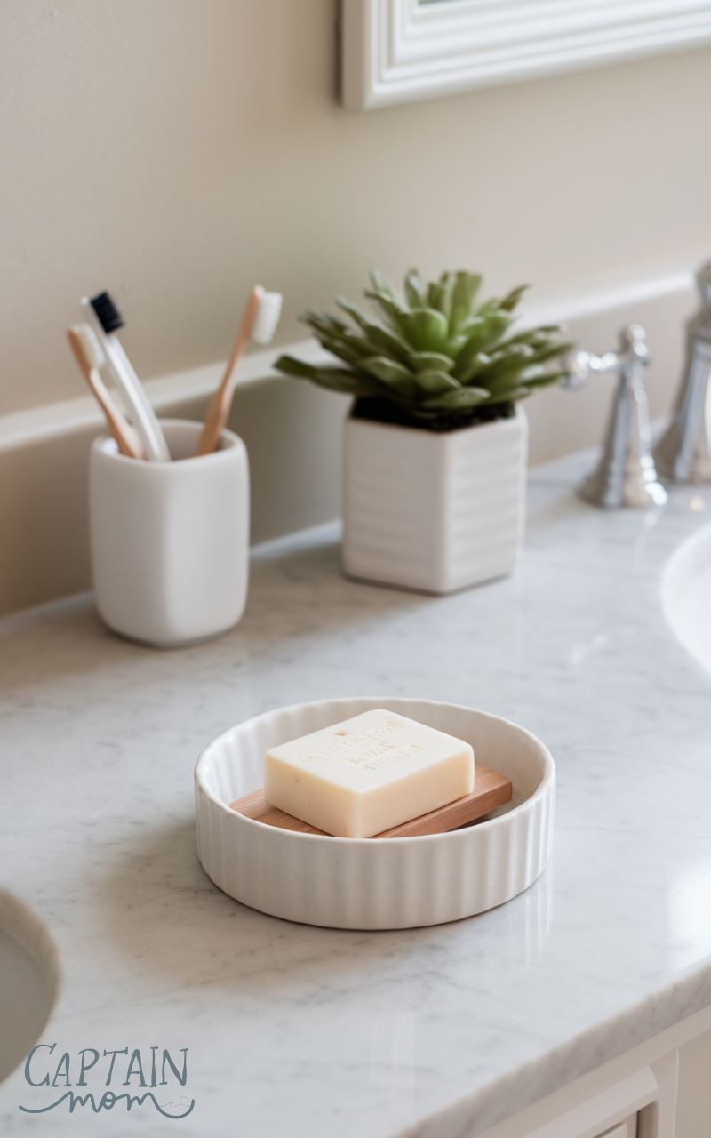 Provide liquid soap or a bar in a dish. This basic guest bathroom essential keeps hands clean and adds a touch of thoughtfulness. Choose a gentle, pleasant-scented soap that suits most guests. I often go for a mild lavender or citrus scent, which feels fresh but isn’t overpowering. Small details like a pretty soap dish can also elevate the space visually.
