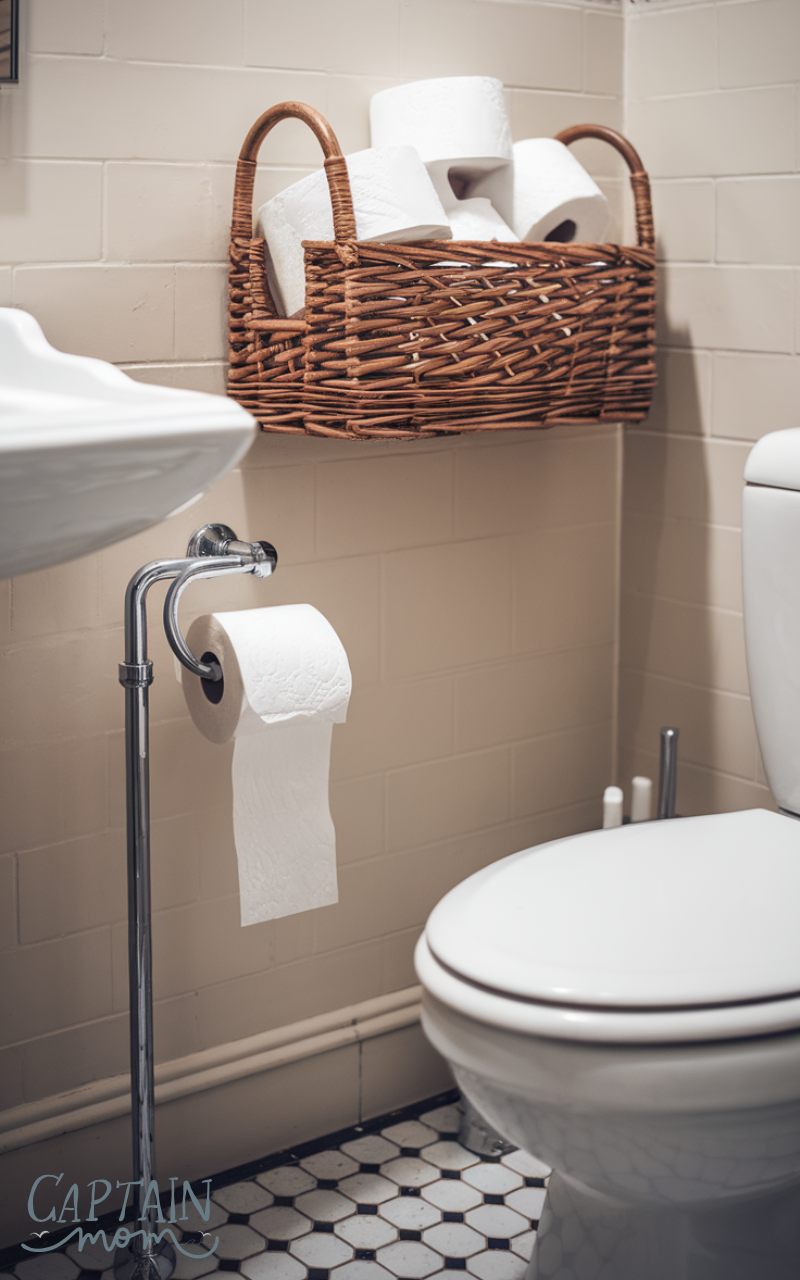 Always have extra rolls on hand. Place one on the holder and store backups in a basket or cabinet. This guest bathroom essential ensures your visitors never run out, keeping their experience stress-free. I like to keep a few extra rolls tucked in a small basket on the floor—it’s practical and can even double as décor if the basket matches the bathroom style.