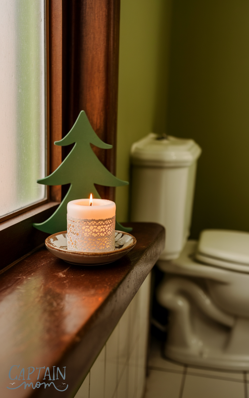 A small air freshener or candle keeps the bathroom smelling fresh. This guest bathroom essential creates a welcoming environment and adds a subtle, cozy touch.