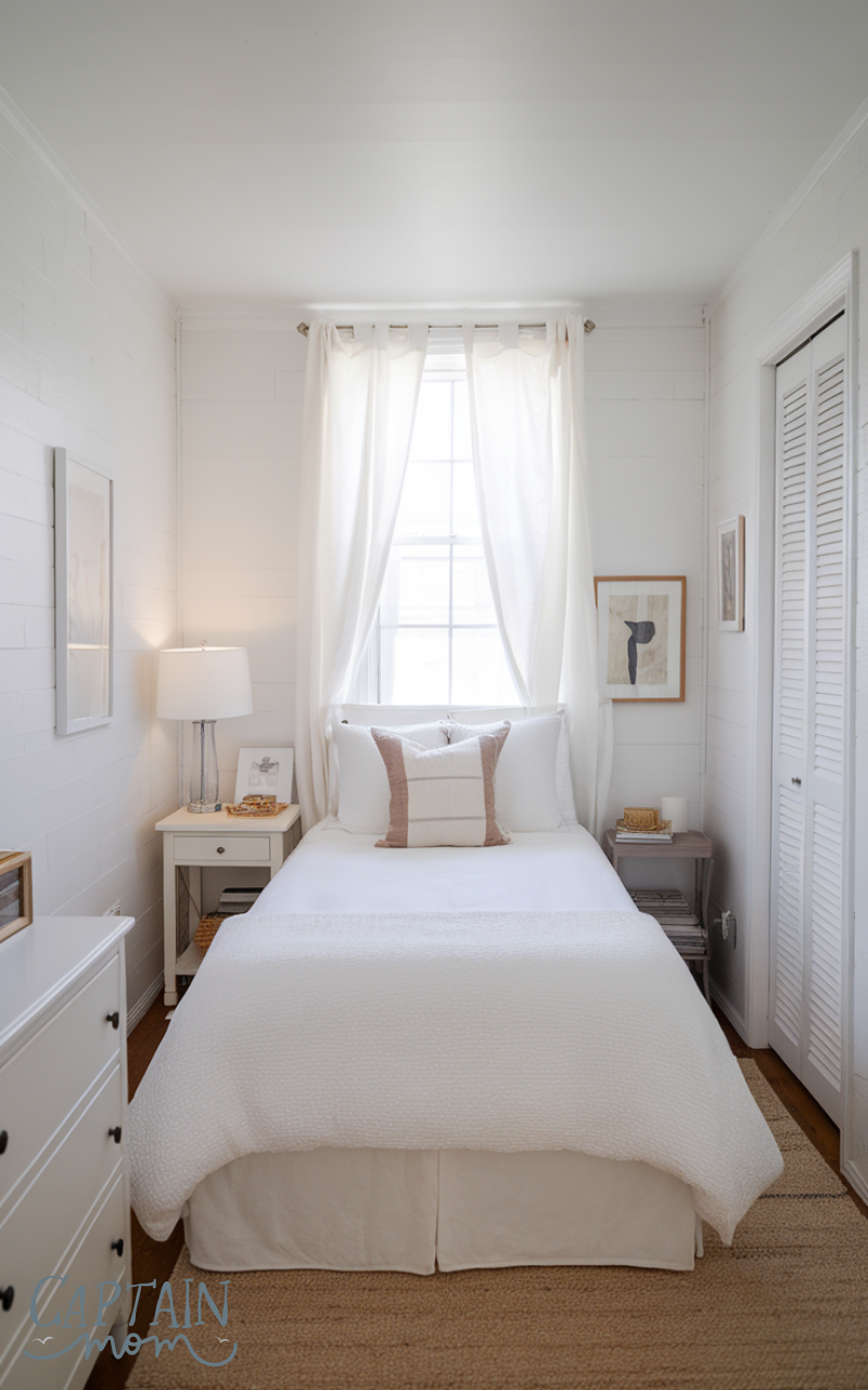 Minimal furniture is key when applying layout tips for a tiny bedroom with a queen bed. Stick to essentials like the bed, one nightstand, and perhaps a small dresser. Avoid overcrowding the room with chairs or bulky décor. Simple, streamlined pieces make the space feel larger and more peaceful while maintaining practicality.