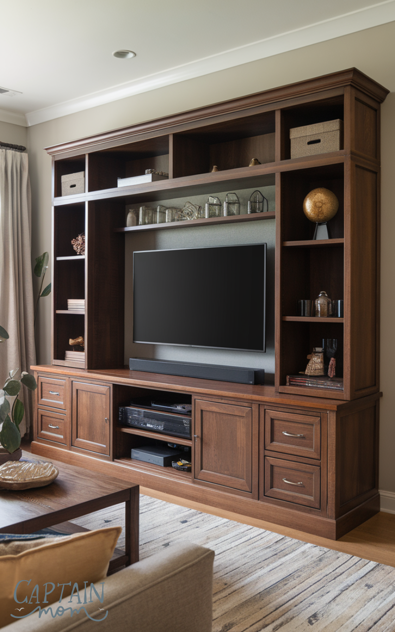 A media unit with built-in compartments is essential for a living room with no closet storage. It keeps electronics, cables, and accessories organized while hiding the mess behind doors. Look for designs with drawers and cabinets to maximize functionality. This approach ensures your living room with no closet storage remains clean, streamlined, and comfortable for everyday use.