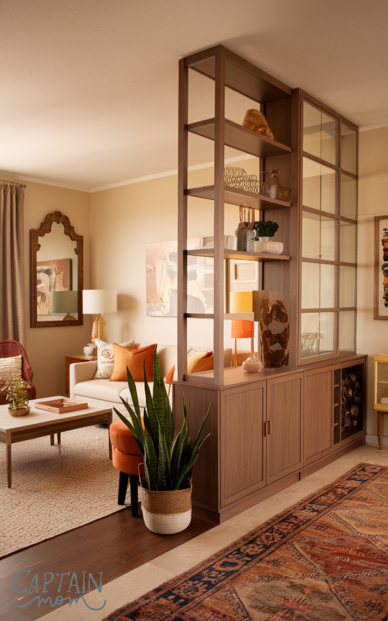 A room divider with storage is a creative way to organize a living room with no closet storage. It separates spaces while offering shelves or cabinets for storage. This works especially well in open-plan homes. A living room with no closet storage gains both structure and functionality with this solution.