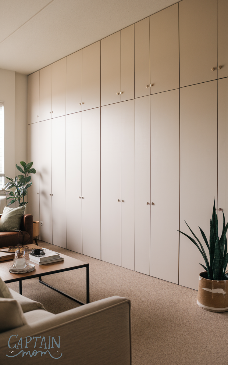Custom storage solutions are the ultimate answer for a living room with no closet storage. Designed specifically for your layout, they maximize space and match your style perfectly. From built-ins to custom cabinets, this option ensures nothing is wasted. A living room with no closet storage becomes both functional and beautifully tailored to your needs.