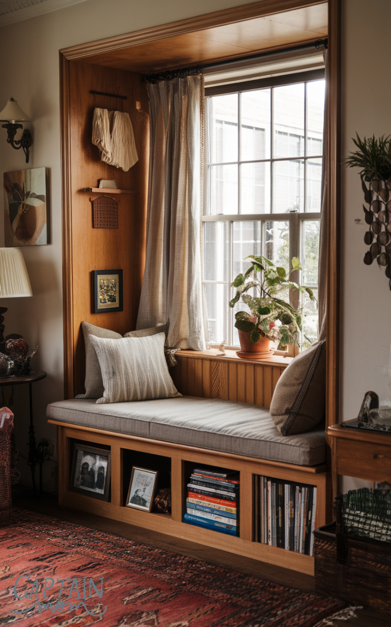 Window seating with built-in storage is a clever solution for a living room with no closet storage. The seating provides a cozy nook while the hidden storage underneath is perfect for blankets, books, or seasonal décor. It adds charm and functionality at the same time. In a living room with no closet storage, this idea combines comfort and organization beautifully.