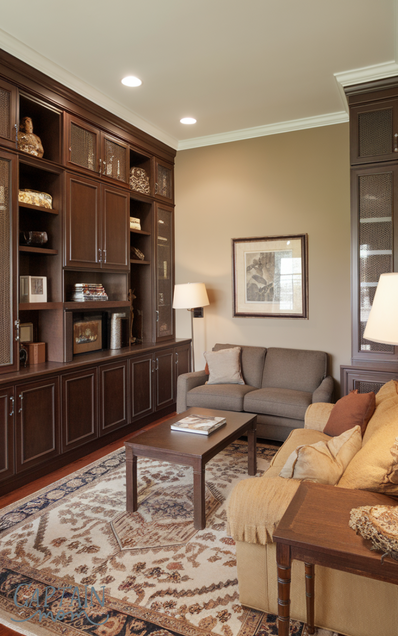 Built-ins work beautifully in a Square Living Room Layout. Shelving or cabinets along one wall add storage without cluttering the floor. This keeps the room open while maximizing function. Seating can be arranged symmetrically opposite the storage wall, creating balance and flow. It’s a smart solution for keeping square rooms tidy and visually calm.