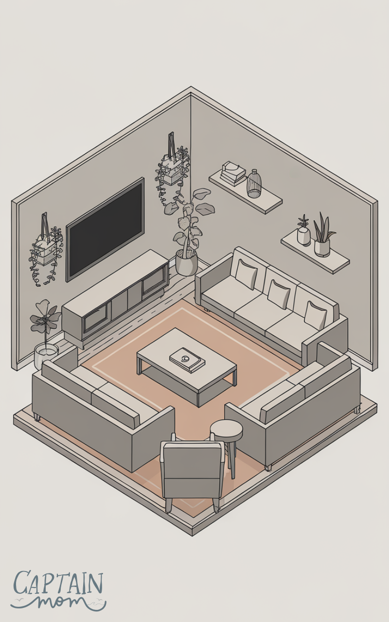 I especially love figuring out a Square Living Room Layout when I need to consider a Living Room With Kids. There’s always toys to think about, snacks to store, and little feet running around, so every piece of furniture has to serve a purpose without making the space feel cramped. I’ve discovered that simple tricks like floating sofas or centering a coffee table can make the room feel open, while still creating defined zones where everyone can relax or play. It’s all about making the square shape work for your lifestyle rather than against it.