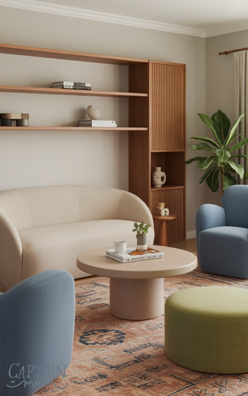 Safety is a top priority in a family friendly living room. Furniture with rounded edges helps prevent bumps and injuries, especially with young children. Softer shapes also create a more welcoming and relaxed atmosphere. Choosing rounded coffee tables or ottomans keeps the space comfortable and practical, making your family friendly living room safer without sacrificing design.