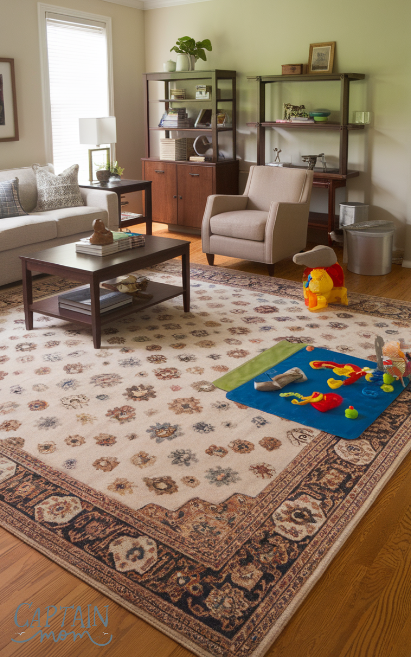 A durable area rug is essential in a family friendly living room. It protects floors, softens noise, and creates a comfortable space for kids to play. Choosing low-pile or washable rugs helps handle spills, crumbs, and everyday messes without stress. Neutral or patterned designs hide stains better and keep the room looking fresh. A well-chosen rug adds warmth while making your family friendly living room safer and more practical.