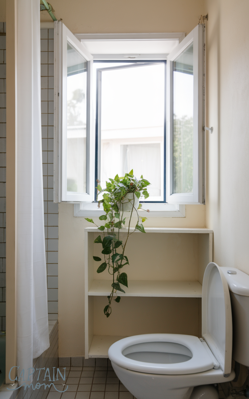 Fast small bathroom cleaning routine tip: open a window or turn on the exhaust fan for a few minutes to reduce moisture and odors. A quick air-out keeps the small bathroom feeling fresh.