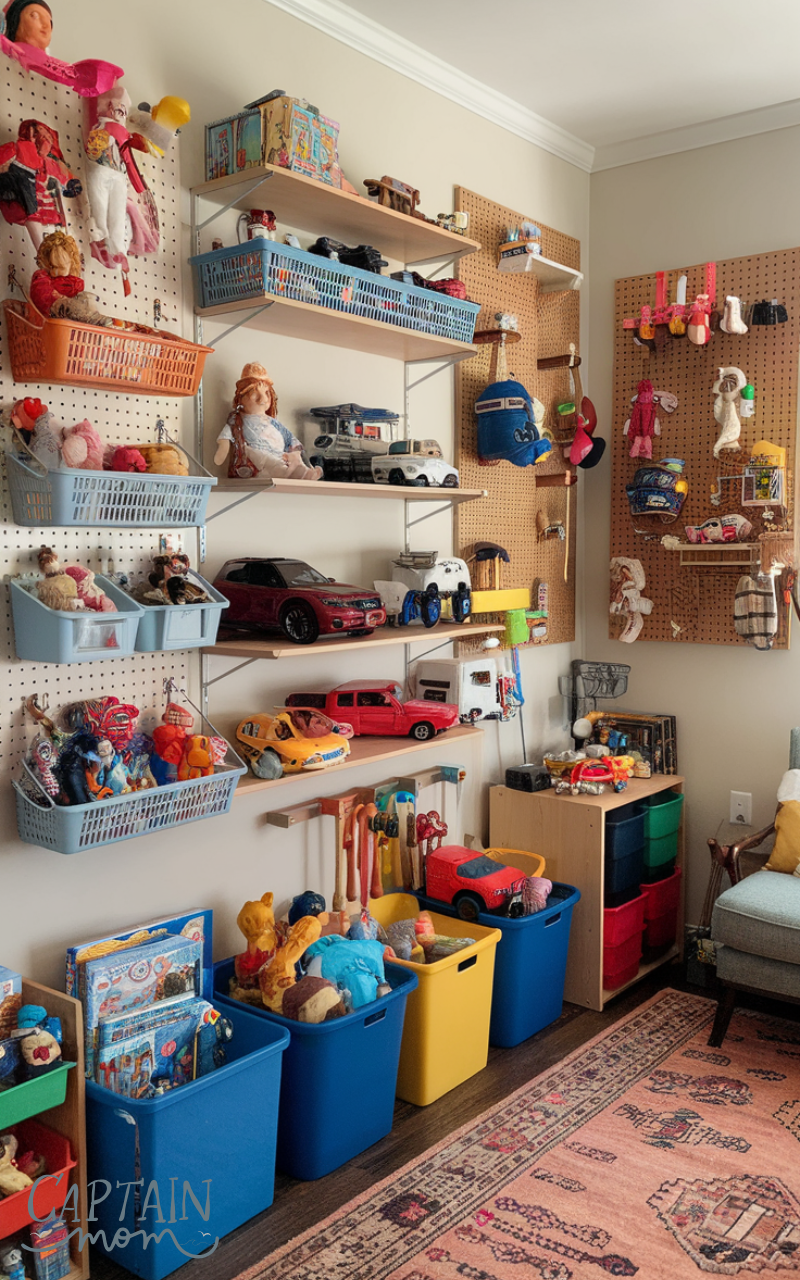 Maximizing vertical space can make clutter with toy organization much easier. Wall-mounted shelves, hanging baskets, or pegboards create storage without taking up floor space. This keeps toys organized, accessible, and off the ground, leaving your room feeling open and functional for the whole family.
