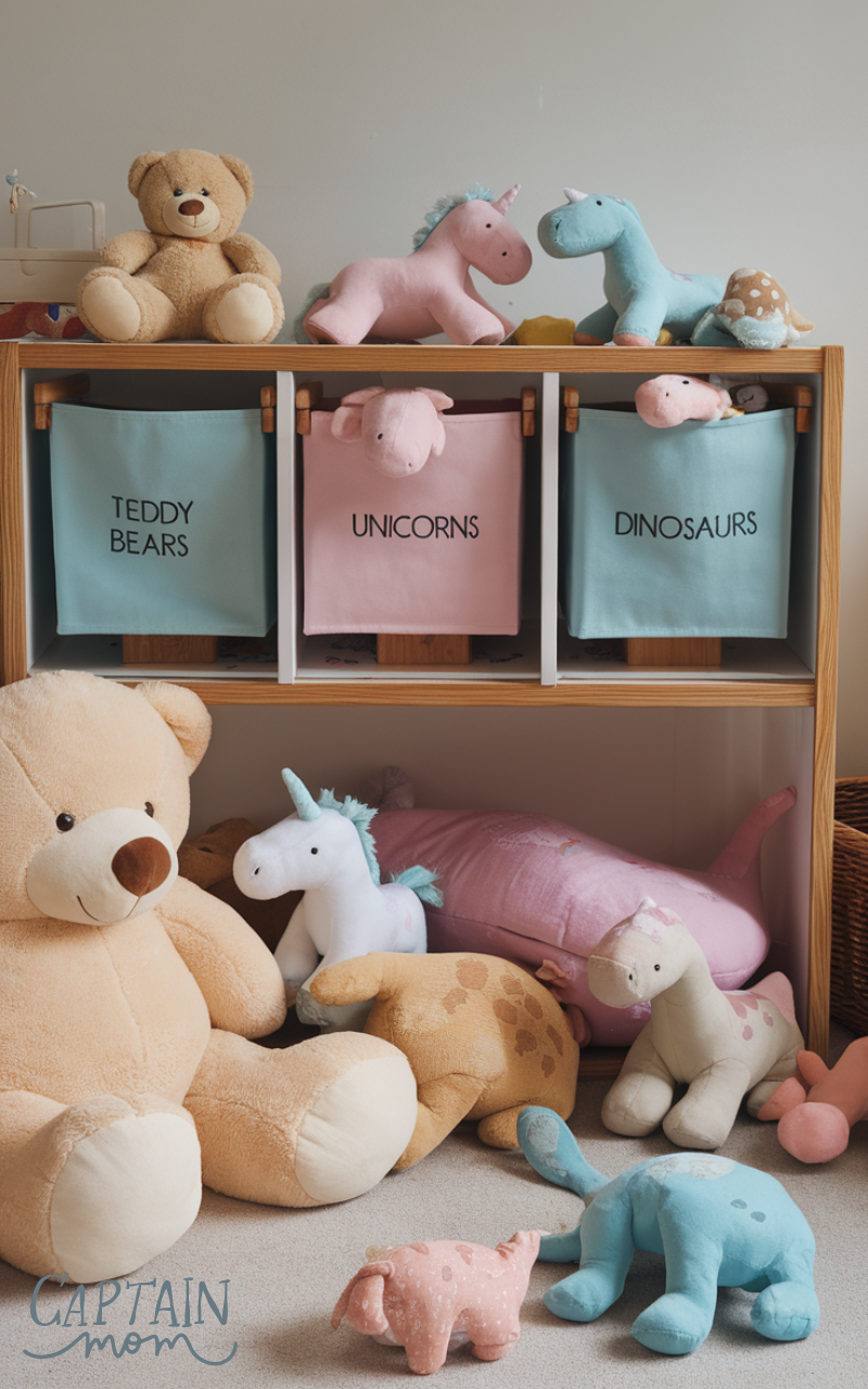 Soft toys can easily create clutter with toy organization, but fabric bins make a huge difference. They’re lightweight, flexible, and easy for kids to use. Fabric bins can be stored on shelves, under furniture, or in closets, keeping plush toys organized while maintaining a tidy room.