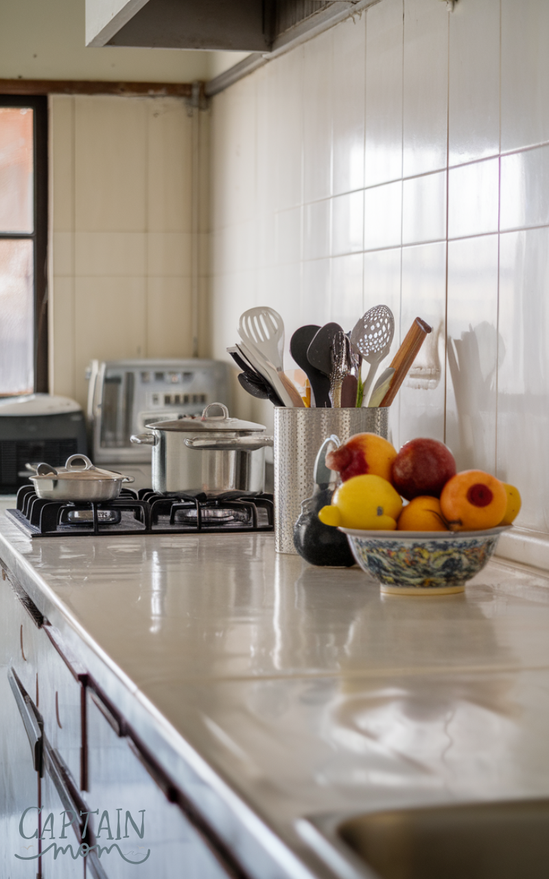 Decor is lovely, but too much adds visual noise. Keeping a kitchen counter without clutter means choosing one or two decorative elements only, such as a small plant or a bowl of fruit, instead of multiple decor pieces.