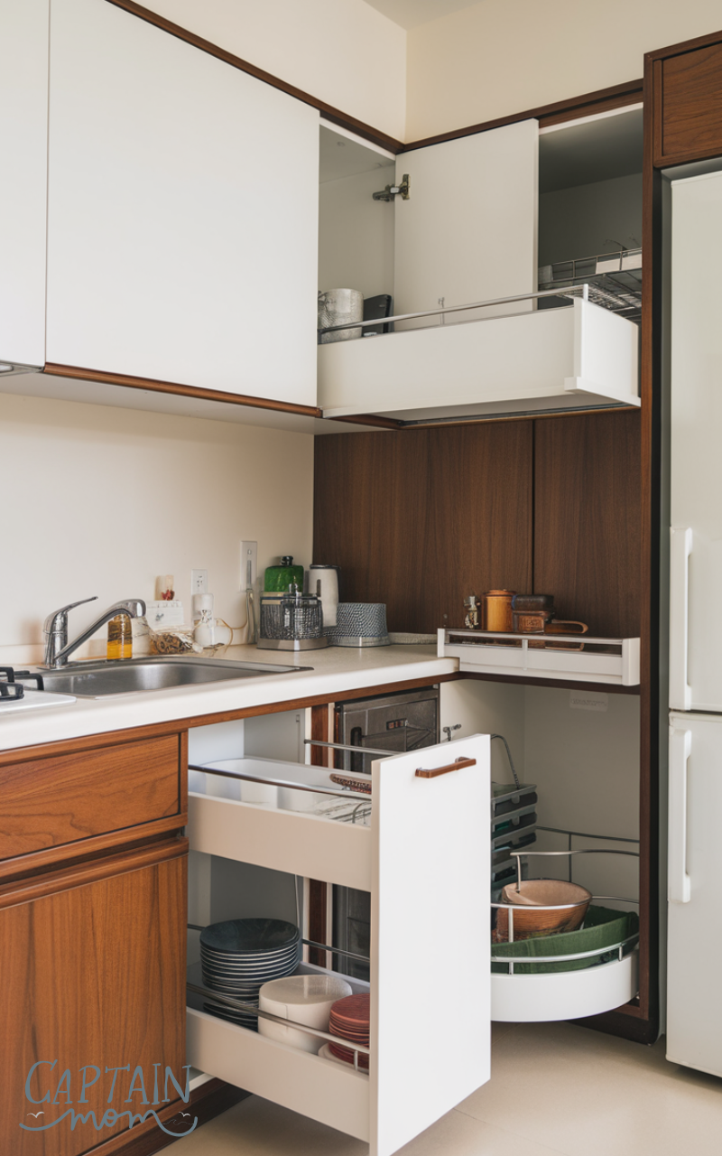 Hidden storage like pull-out cabinets or corner drawers supports keeping a kitchen counter without clutter effortlessly. These solutions allow you to store more without overcrowding visible areas, making the kitchen feel streamlined and organized.