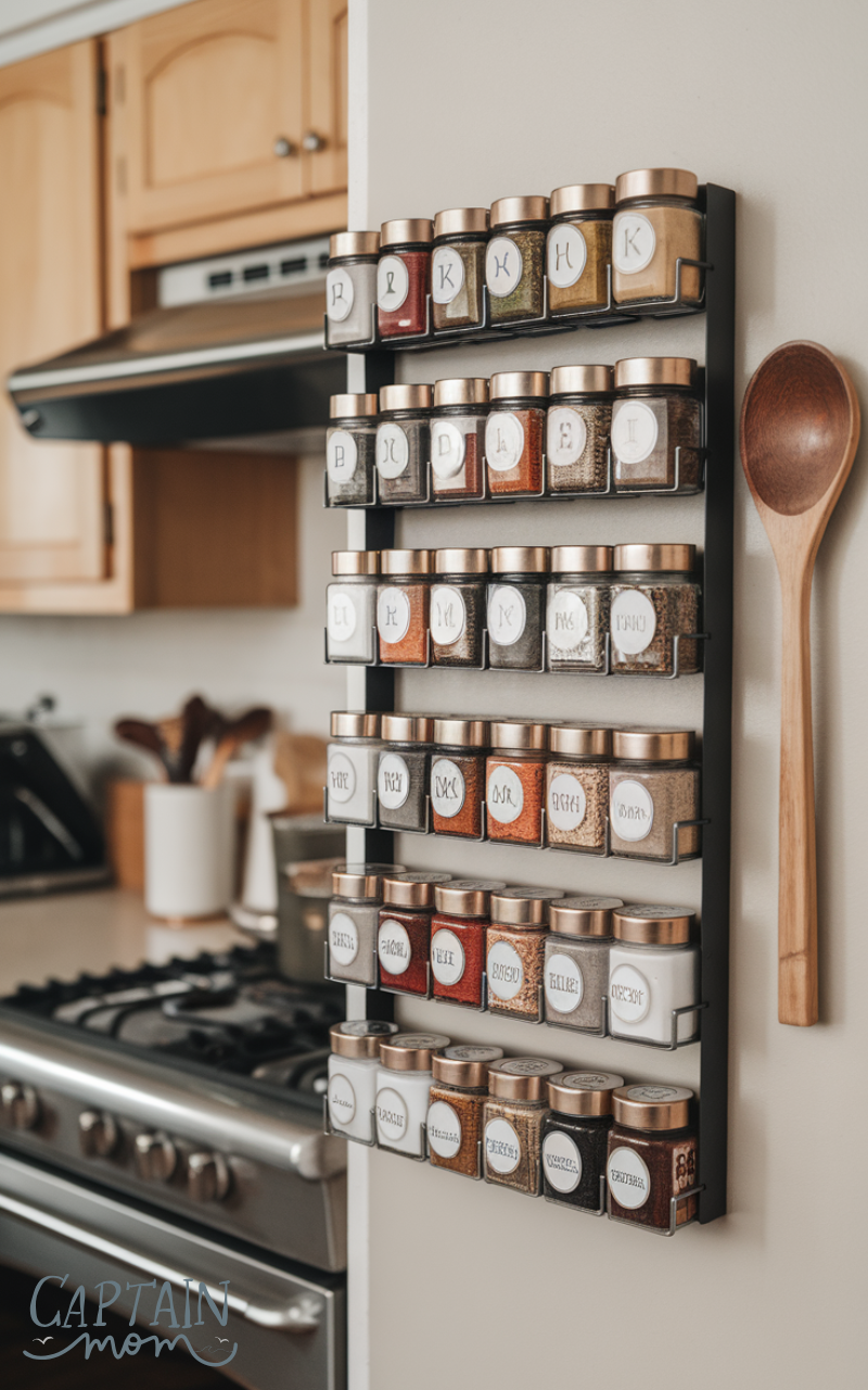 Magnetic spice racks are a modern and space-saving kitchen storage option. Mounted on walls or refrigerators, they keep spices visible and organized. This solution frees up drawers and cabinets while making cooking more efficient.