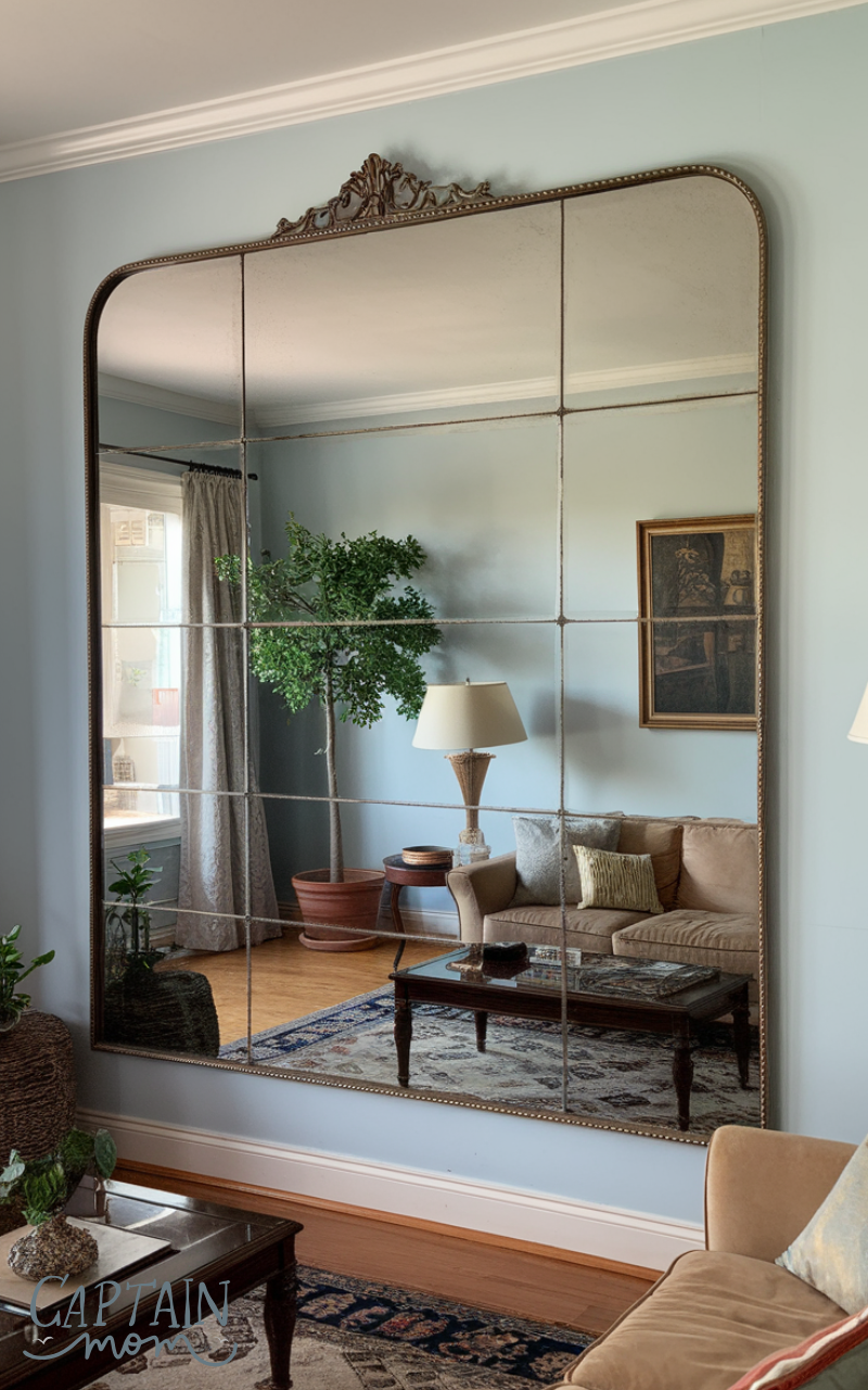 Mirrors are a smart trick in living room decor, especially for smaller spaces. They reflect light and make the room appear bigger and brighter. A large decorative mirror can also serve as wall art. Placed correctly, mirrors enhance natural light and add elegance. This simple addition can dramatically improve your living room decor with minimal effort.