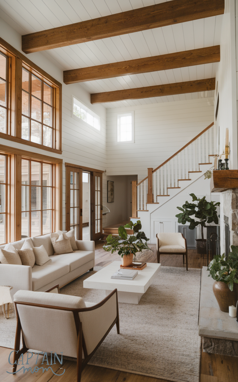 Start your modern farmhouse home decor with neutral tones like beige, white, soft gray, and warm taupe. These colors create a calm and inviting base, allowing wooden accents, metal details, and cozy textiles to stand out. Neutral walls and furniture provide a blank canvas that enhances the rustic yet modern vibe of your home.